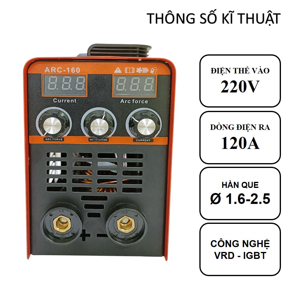 -Núm vặn điều chỉnh dòng hàn 20A-160A, đồng hồ hiển thị thông số kĩ thuật