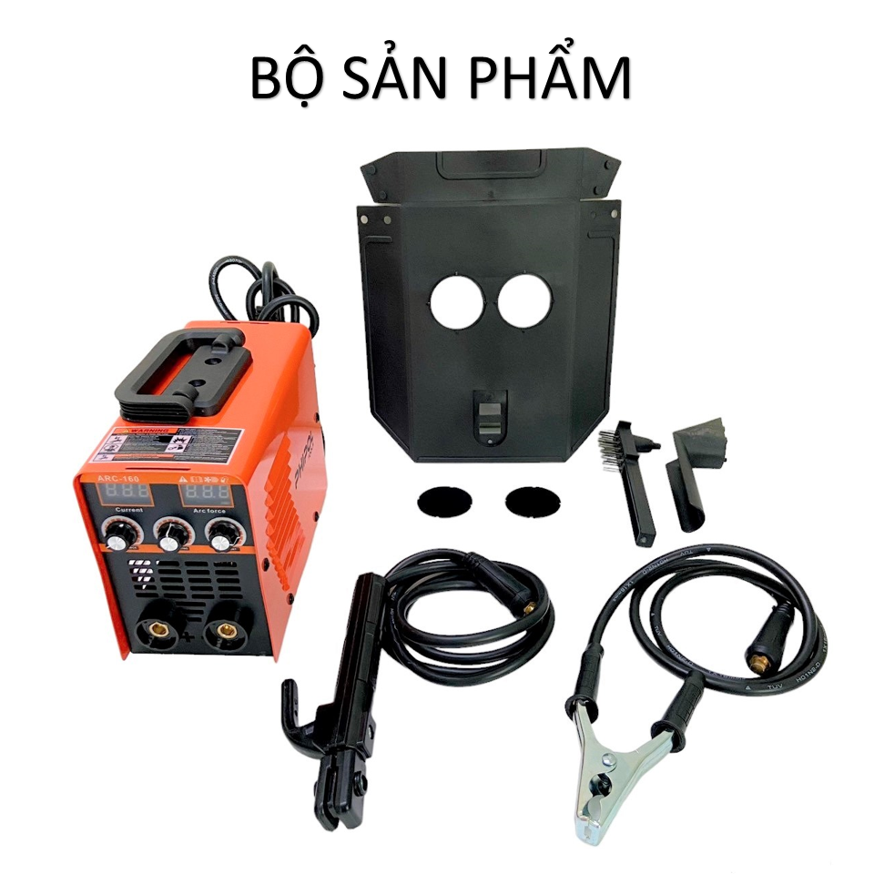 -Tặng kèm sản phẩm gồm có: kìm hàn 200A 1.8M, kẹp mát 1.2M, mặt nạ, chổi gõ sỉ