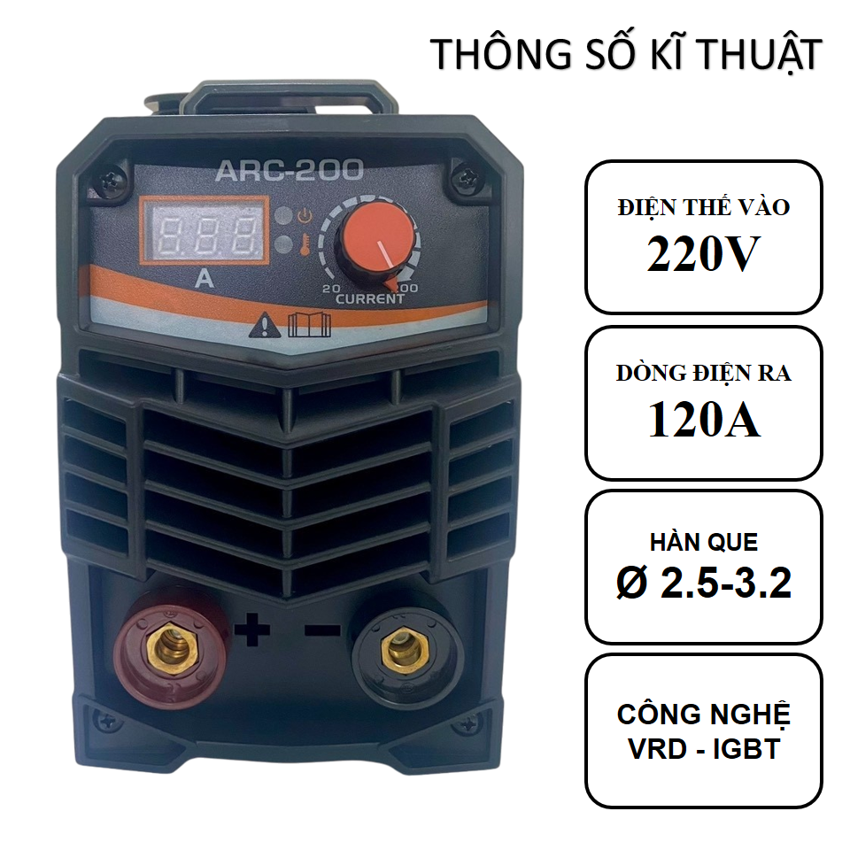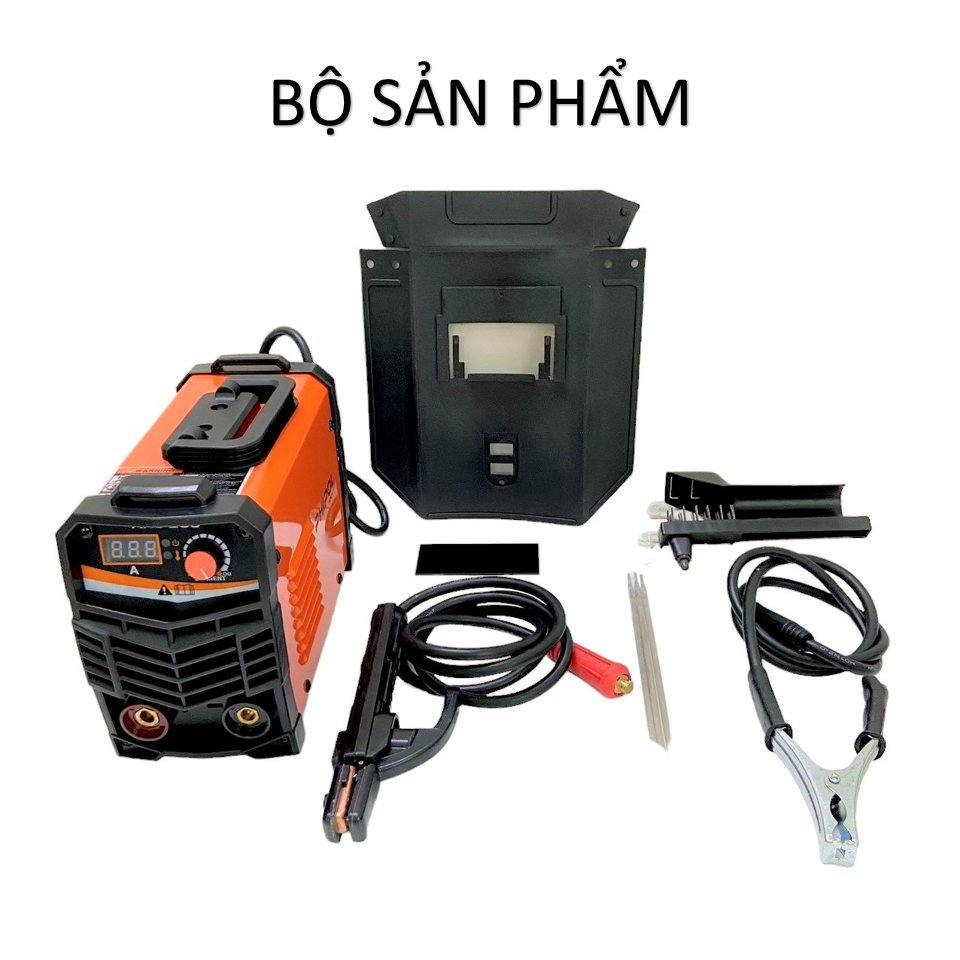 -Tặng kèm sản phẩm gồm có: kìm hàn 200A 1.8M, kẹp mát 1.2M, mặt nạ, chổi gõ sỉ, găng tay, 3 que hàn, kính hàn