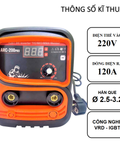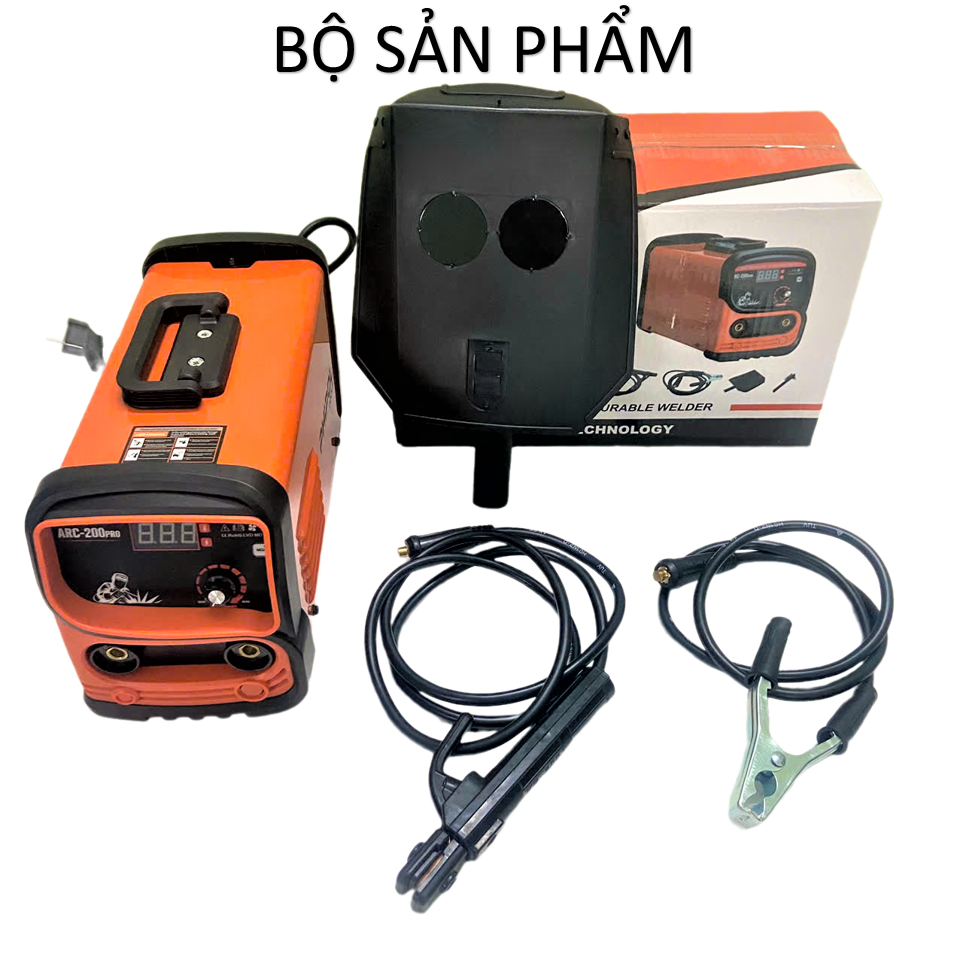 -Tặng kèm sản phẩm gồm có: kìm hàn 200A 1.8M, kẹp mát 1.2M, mặt nạ, chổi gõ sỉ, găng tay, 3 que hàn, kính hàn