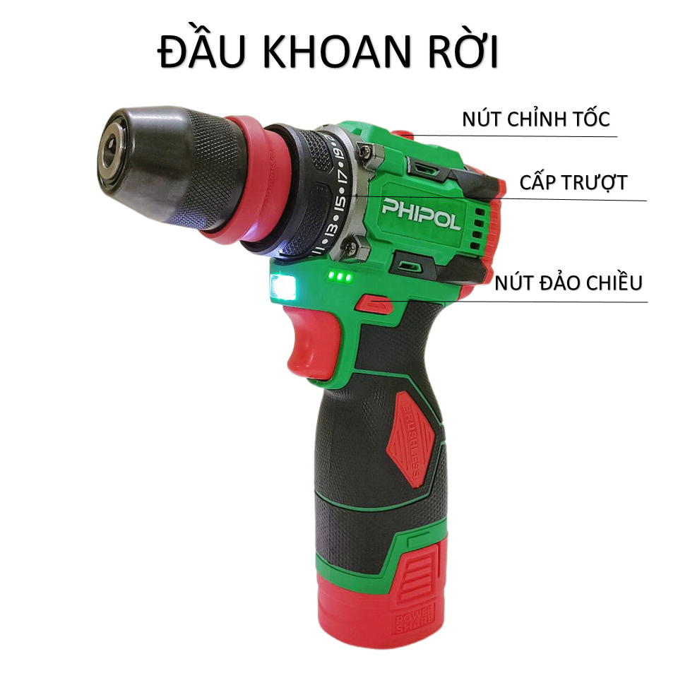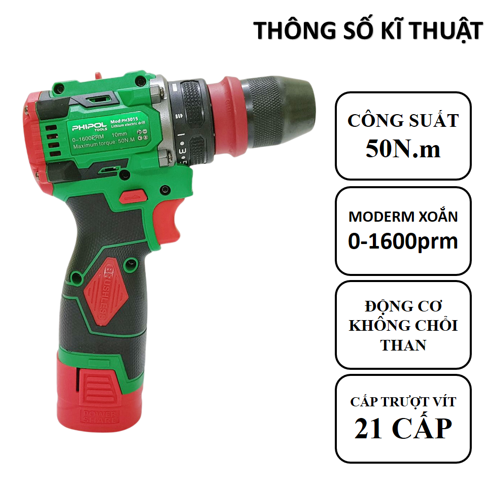 – Chế độ bắt vít: 21 cấp trượt (không bị trờn răng), cò (chỉnh được tốc độ)